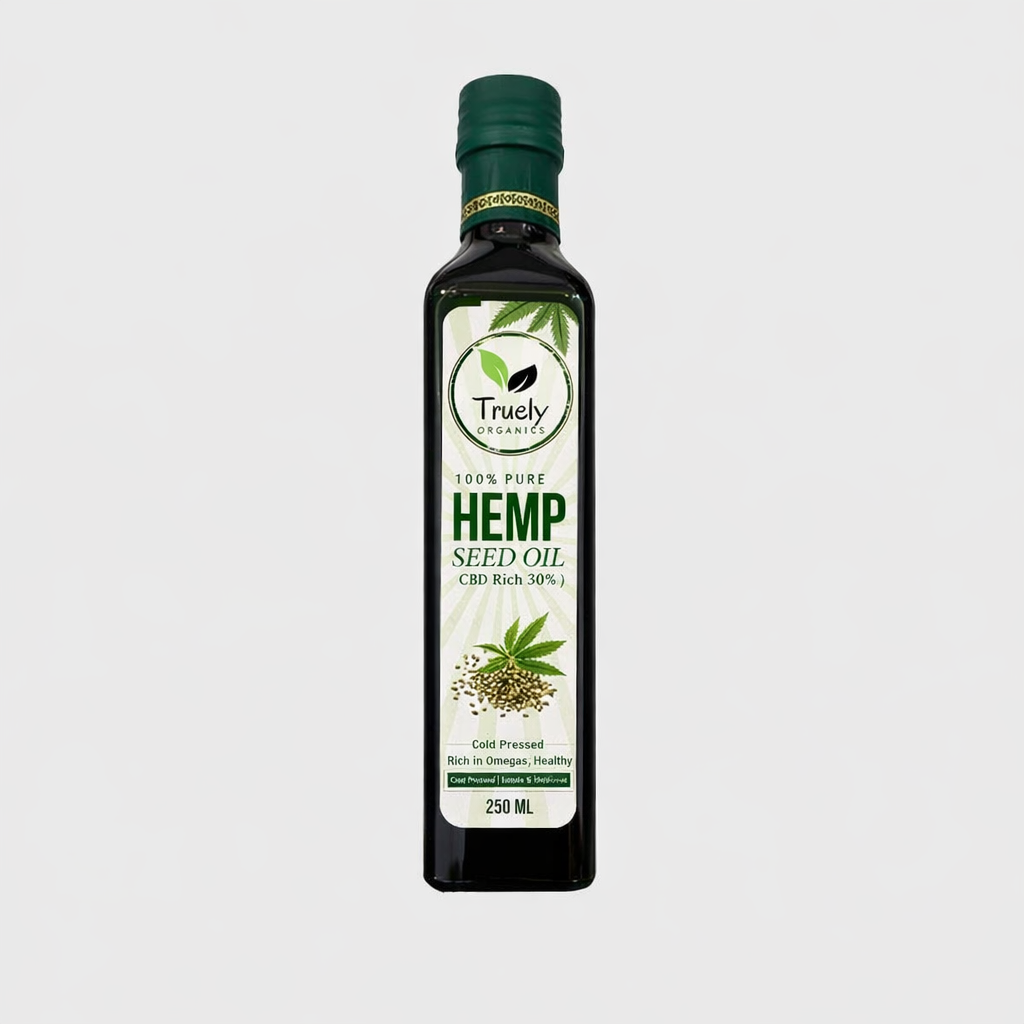100% pure and cold-pressed Hemp Seed Oil, rich in omega-3 & 6 fatty acids. Nourishes skin, supports heart health, and promotes overall wellness. Ideal for internal and external use.